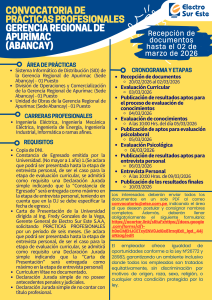 Convocatoria de Prácticas Profesionales de la Gerencia Regional Apurímac - Electro Sur Este S.A.A
